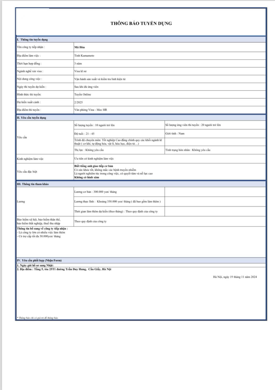 - Lương cơ bản: Khoảng 300,000 Yên/tháng (chưa bao gồm tiền làm thêm giờ).