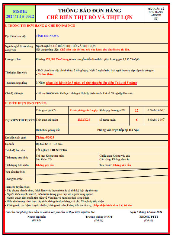 6. Lịch phỏng vấn: Ngày 19/12/2024.