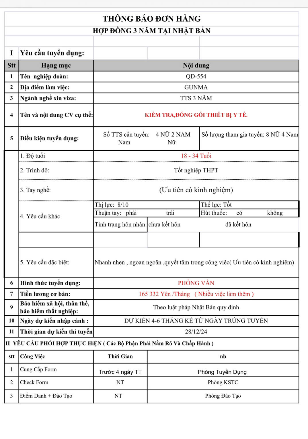 Đây là một trong những đơn hàng phù hợp với người lao động Việt Nam có mong muốn làm việc tại Nhật Bản trong môi trường chuyên nghiệp, ổn định và mang lại nhiều cơ hội phát triển sau khi trở về nước.