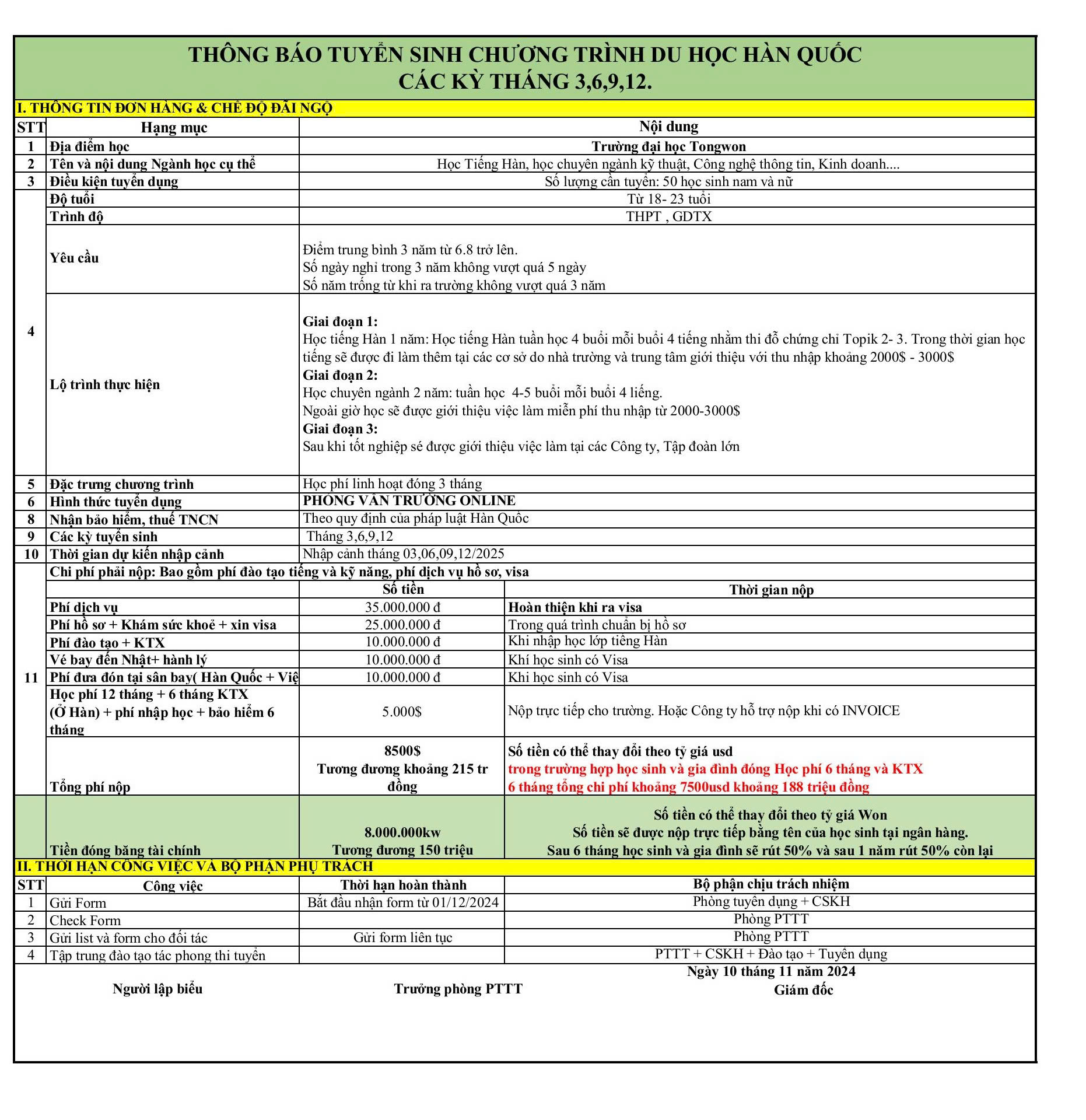 Du Học Hàn Quốc Đại học Dongwon đã đi đầu trong việc tạo ra và thực hiện các chương trình giáo dục thực tế theo định hướng lĩnh vực công nghiệp và các chương trình phát triển tài năng toàn diện với mục tiêu nuôi dưỡng các chuyên gia có năng lực, những người sẽ lãnh đạo xã hội thông tin đang thay đổi nhanh chóng. Kết quả là trường đã đạt được kết quả đáng chú ý trong công tác hướng dẫn việc làm và được biết đến như một trường đại học danh tiếng ở khu vực đô thị. Gần đây, như một phần của chương trình quốc tế hóa, chúng tôi đã tăng cường giáo dục ngoại ngữ và mở rộng đáng kể các hoạt động trao đổi quốc tế và cơ hội việc làm CNTT ở nước ngoài cho từng chuyên ngành, từ đó khẳng định mình là trường đại học quốc tế hóa hàng đầu. Tại cơ sở Dongwon này, chúng tôi hy vọng rằng các bạn sẽ phát triển được tầm nhìn quốc tế của mình và phát triển tinh thần, nghị lực để vươn ra thế giới.